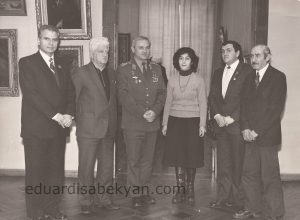 —, Эдуард Исабекян, летчик-космонавт СССР Владимир Джанибеков, директор МИА Лаврентий Барсегян, заместитель директора НГА Эдвард Мелконян